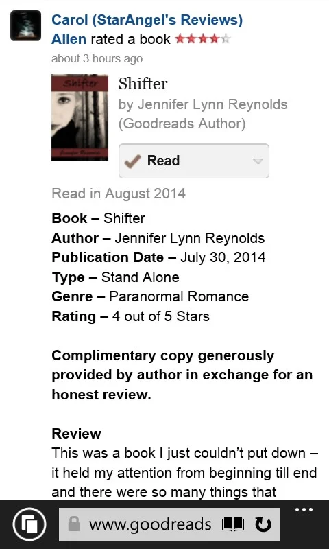 Check out this amazing new 4 STAR review on Goodreads. Click on the images to follow the review. This review is long but wonderful. Want to know what all the excitement is about? Purchase your copy today for only $.99. http://www.amazon.com/dp/B00M8HLU2U