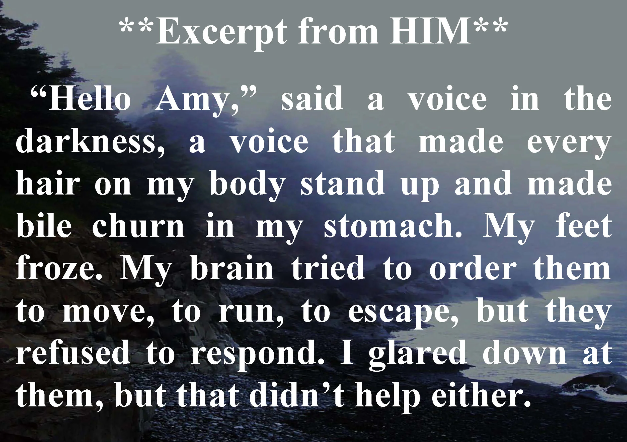 To find out why this man terrifies her so much, download you copy of HIM the day it goes on sale in February.https://www.goodreads.com/book/show/24377181-him